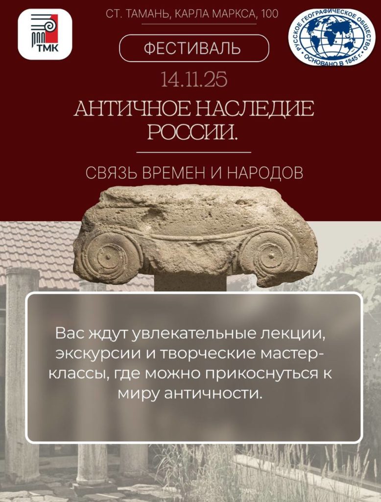 Фестиваль в рамках проекта РГО «Античное наследие России. Связь времен и народов», приуроченный к 180-летию Русского географического общества, распахнет свои двери для всех, кто стремится прикоснуться к тайнам древних цивилизаций.