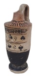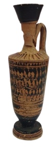Лекиф – одна из самых распространенных форм сосудов в греческой керамике. Он имел широкое применение как в бытовом обиходе, так и в заупокойном культе: лекифы закапывались с покойником в могилу, в дни поминовения умерших родственники приносили на гробницу эти сосуды, наряду с другими дарами.